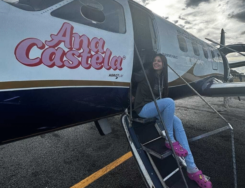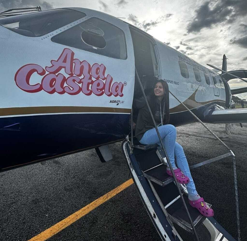 Ana Castela mantém o perfil discreto, mas também possui um avião próprio. A Boiadeira, no entanto, não abre mão de personalizar a fuselagem com seu nome, demonstrando estilo e personalidade, mesmo sem divulgar valores ou modelo.