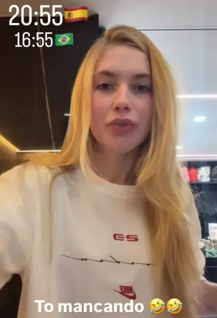 Em visita ao namorado, Vini Jr., em Madri, na Espanha, ela usou os stories do Instagram, na manhã desta quarta-feira (4), para atualizar os seguidores sobre o estado de saúde. “Nossa, tô com a cara de acabada, olheira, não dormi nada essa noite, passei muito mal. Tive febre, tomei remédio. Acordei, tipo, 3 da manhã, muito mal”, relatou.