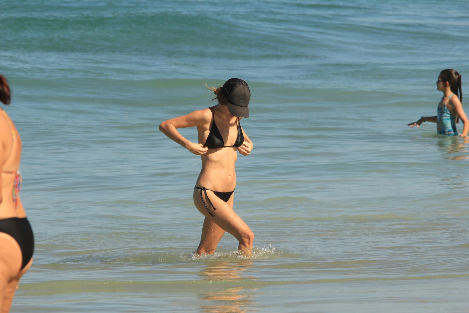 Erika Mader aproveita o domingo para curtir a praia do Leblon