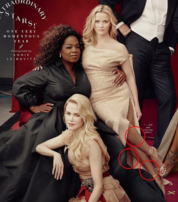 A edição atrapalhada das fotografias, tiradas por Annie Leibovitz, também afetaram a atriz Reese Witherspoon, deixando-a com três pernas
