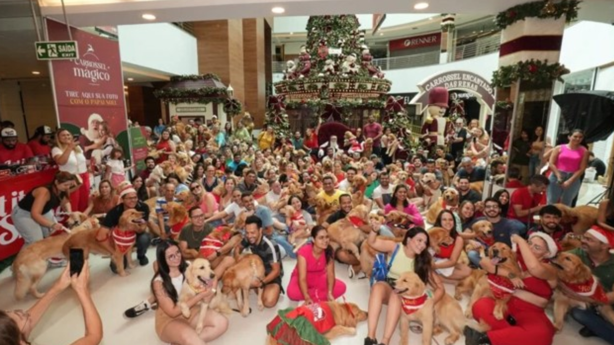 Aconteceu neste domingo (15), no Goiânia Shopping, um evento que reuniu aproximadamente 200 cães da raça Golden Retriever para fotos com o Papai Noel.