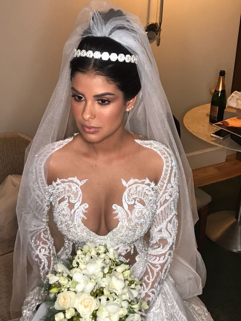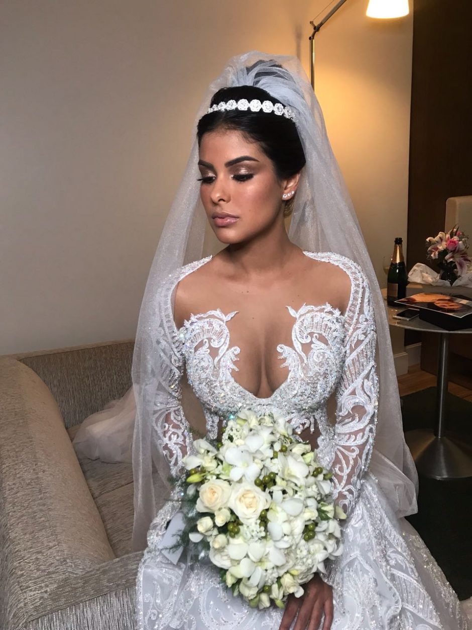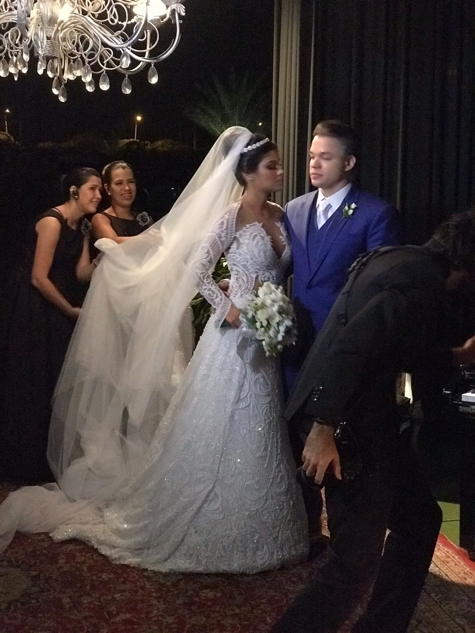 A ganhadora do BBB 16 usou um vestido decotado, enfeitado com 300 mil pedras Swarovski, para subir no altar com o empresário Anderson Felício