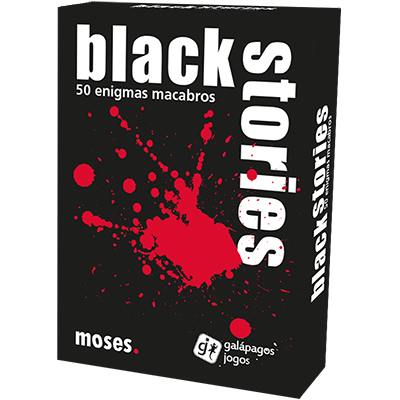 Outro que pode ser jogado de 2 a X jogadores, Black Stories é um jogo de charadas macabro. Cada carta possui um enigma de um crime e os demais jogadores precisam adivinhar. Quem acertar fica com a carta e pontua. Se ninguém acertar, quem leu a carta fica com ela e pontua. O jogo acaba quando as cartas acabarem ou quando os jogadores cansarem. Além do baralho principal, no Brasil já foram lançadas pelo menos seis expansões com mais mistérios sinistros a serem desvendados.