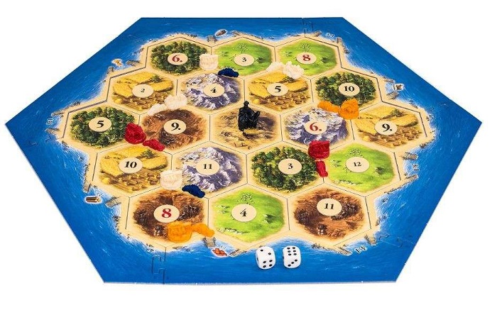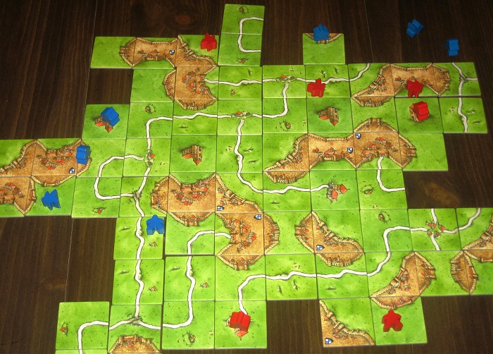 Podendo ser jogado de 2 até X jogadores, fica a critério da mesa, este provavelmente é um dos jogos mais simples da lista. Os jogadores estão construindo a famosa cidadela de Carcassonne usando estradas, vilas, monastérios e fazendas. O jogo não tem tabuleiro: na sua vez, o jogador saca um azulejo que deve ser obrigatoriamente adicionado ao mapa. Além disso, ele possui meeples: seis aldeões que ocupam o terreno e são usados para pontuar. Mas cuidado! O meeple fica preso no tabuleiro até você conseguir seu ponto e se você ficar sem meeples não tem como pegar mais! O jogo acaba quando os azulejos acabam e vence quem fizer mais pontos.