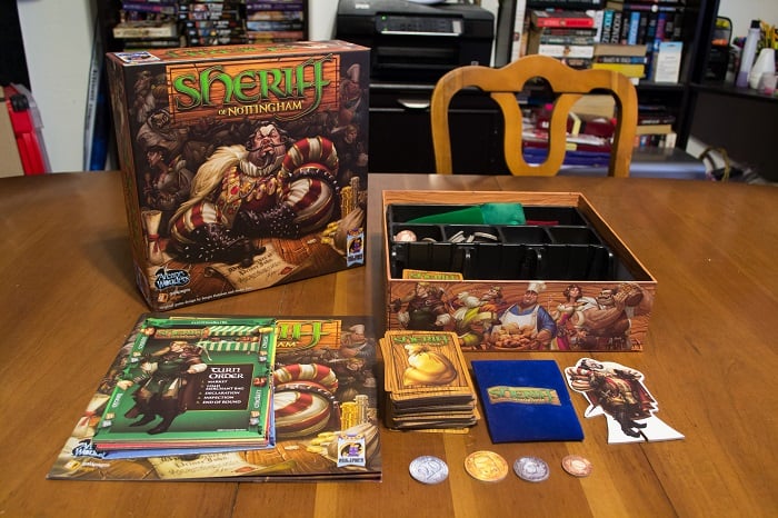 A rebelião de Robin Hood contra o príncipe João está a toda e o xerife de Nottingham já decidiu que ele não se importa com isso: ele agora só quer enriquecer e cair fora. Sendo assim, o xerife montou um posto de controle na entrada da cidade e todas as carroças serão revistadas. No jogo de até 5 jogadores, a cada rodada um deles assume o papel do xerife e os outros são mercadores tentando levar os seus produtos para a cidade. Entre os produtos os jogadores podem tentar levar contrabando da rebelião, como armas, por um preço muito maior. É neste ponto que os jogadores precisam se virar: usando suborno e adulação, o jogador mercador precisa convencer o jogador xerife a fazer vista grossa caso tenha contrabando. Porém, se o xerife decidir revistar o carro e só encontrar produtos legais, ele é penalizado, tendo que pagar uma multa ao mercador. Vence quem no final tiver mais dinheiro.