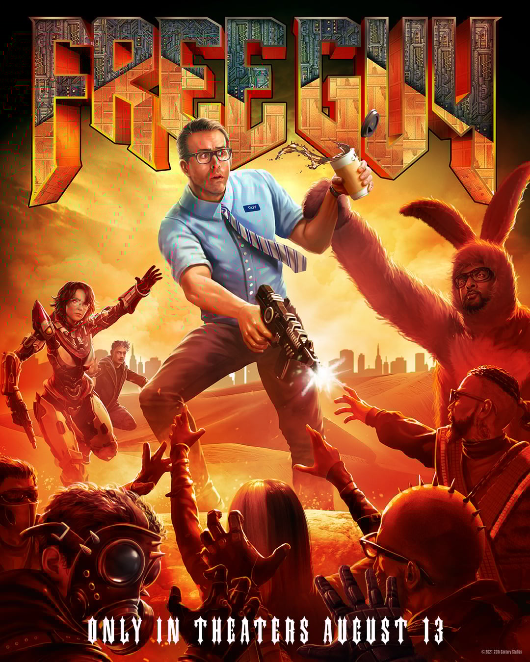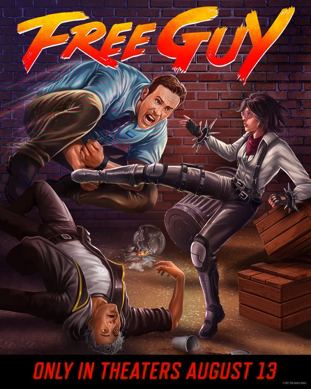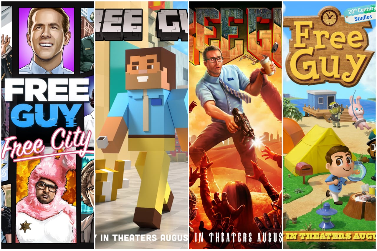 Os novos pôsteres usam clássicos da velha escola e novos sucessos indie para apresentar o personagem Guy de Ryan Reynolds no estilo artístico da capa original, uma homenagem mais do que adequada, já que Free Guy segue um personagem não-jogável que ganha consciência e se torna o herói de um videogame de mundo aberto.