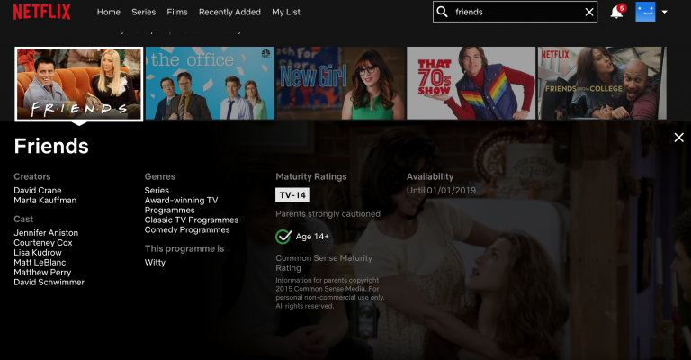 Péssimo jeito de começar dezembro! Ao que tudo indica, Friends deixará o catálogo da Netflix em janeiro de 2019. Usuários norte-americanos da plataforma de streaming notaram um aviso na página do seriado, mostrando até quando a produção estará disponível.
