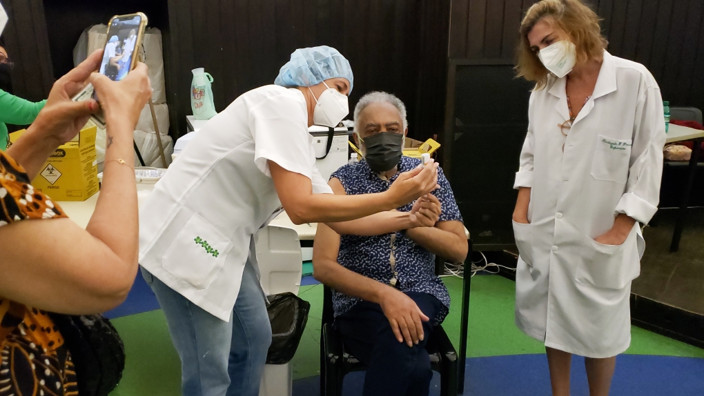 Gilberto Gil toma segunda dose de vacina contra Covid-19; fotos