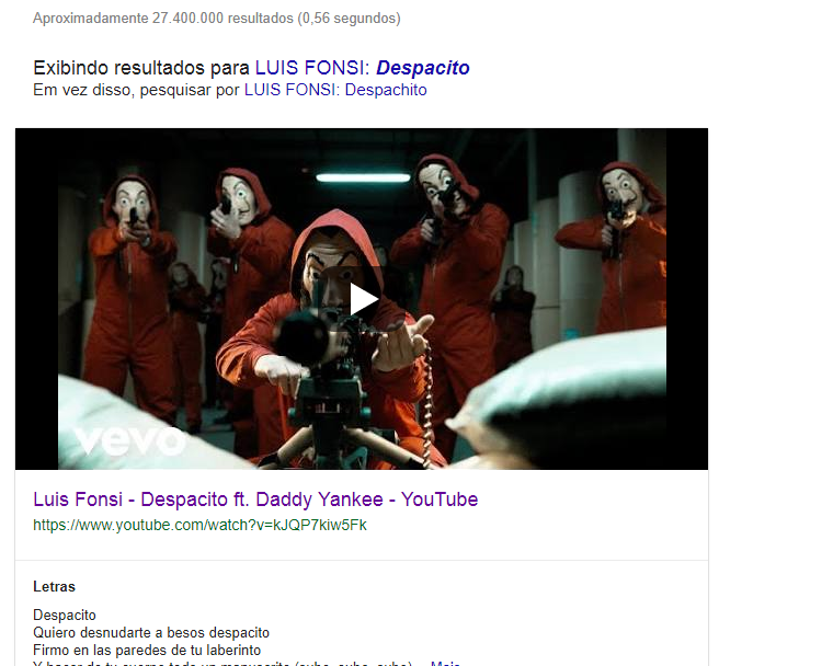 Na madrugada desta terça-feira (10), hackers invadiram o canal de Luis Fonsi no YouTube e apagaram o clipe de Despacito. Ao tentar buscar pelo vídeo no Google, o usuário encontrava uma imagem de La Casa de Papel.