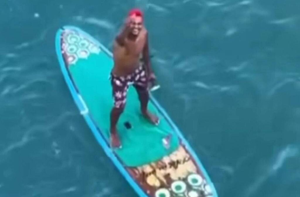 Homem usa prancha para nadar até cruzeiro Neymar; jogador não foi saudá-lo