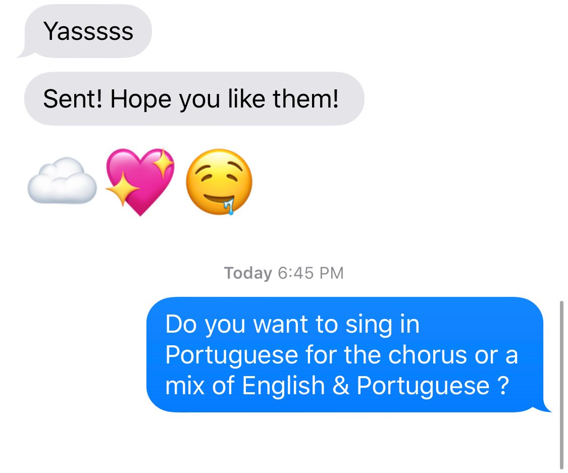 No print, Iggy chega a perguntar se a pessoa do outro lado prefere cantar o refrão em Português, ou em Inglês e Português. Na legenda, escreveu: “quem será que está tramando comigo?”.