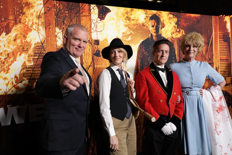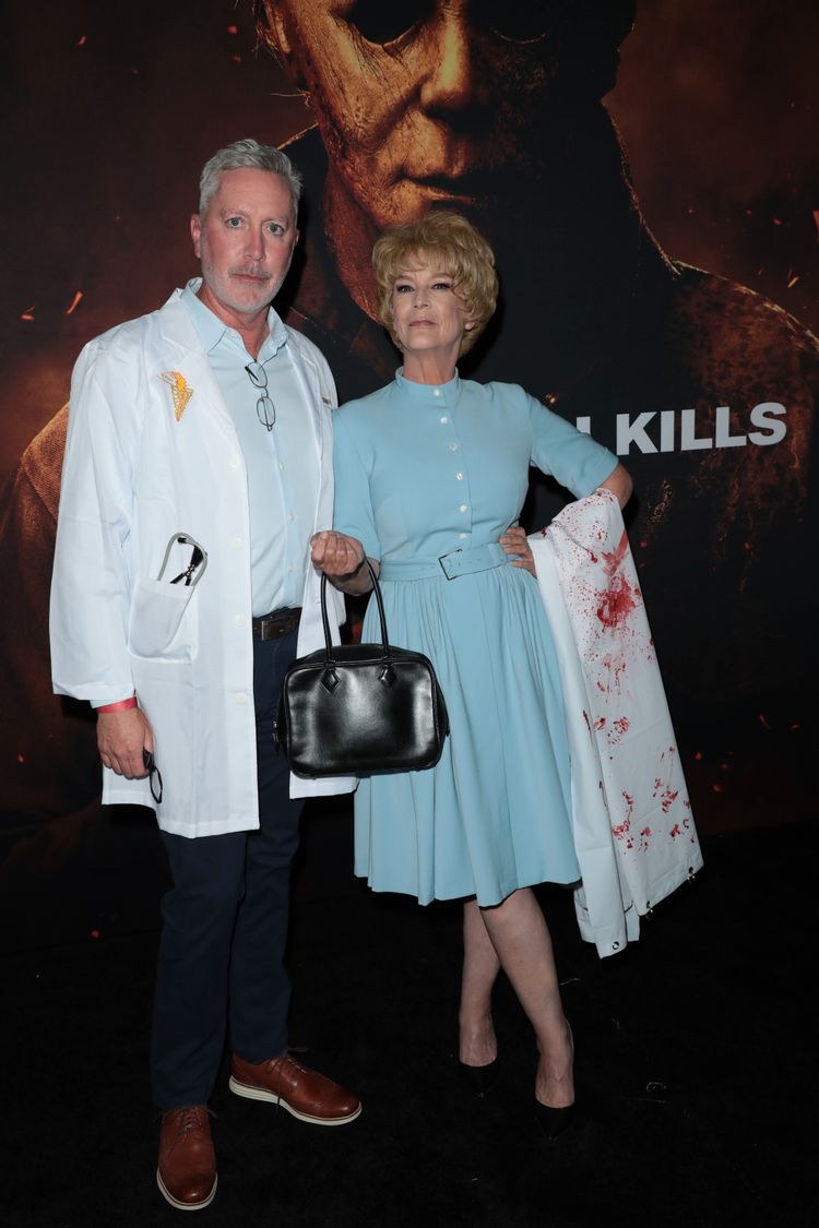 A co-estrela de Curtis em ‘Halloween Kills’, Judy Greer, foi vestida de Diane Keaton no filme “Noivo Neurótico, Noiva Nervosa” de 1977, enquanto o chefe de Blumhouse, Jason Blum, prestou sua própria homenagem ao personagem de Curtis vestindo um traje de Laurie Strode.