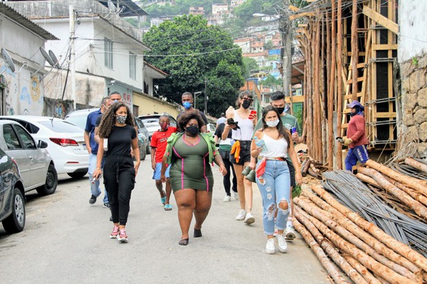 A funkeira posou para fotos de paparazzi e passeou pelas ruas da comunidade.