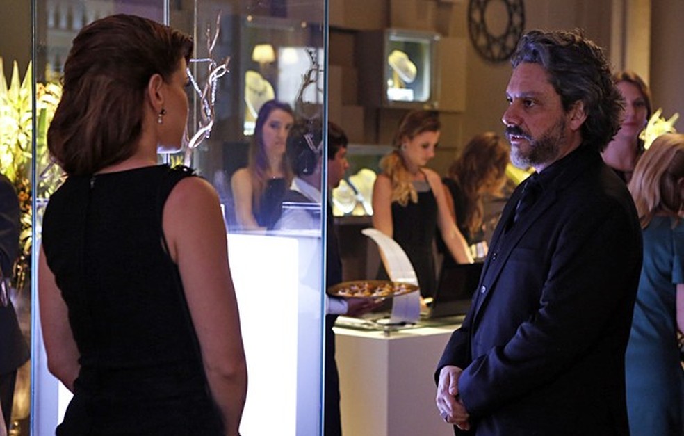 Cristina pega o convite na bolsa e mostra para ele. Alfredo olha com desdém para o papel e continua humilhando a moça: “O que você está fazendo aqui? Um lugar que claramente não é o seu lugar. Esse lugar não é seu, moça. Você não vive nesse mundo.” Cris não deixa barato e diz que realmente não mesmo no mesmo mundo que o todo-poderoso: