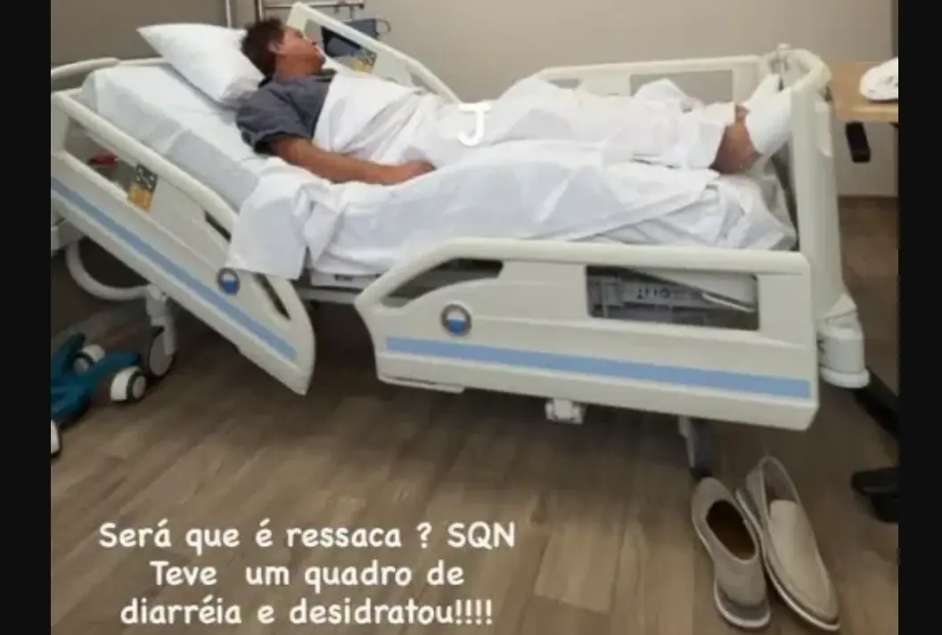 Na imagem, Leonardo aparece deitado na cama do hospital, com o rosto virado para a parede do quarto. “Será que é ressaca? Só que não! Ele teve um quadro de diarreia e acabou desidratando”, escreveu Poliana Rocha, que recentemente se envolveu em uma polêmica após relembrar o episódio em que “adotou” um adolescente na Bahia para brincar com Zé Felipe em Goiânia e, depois, devolveu o jovem.