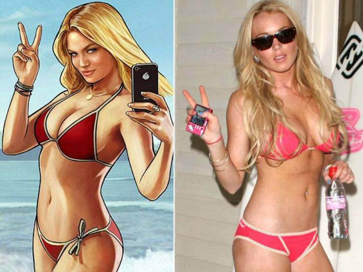 À época do lançamento de GTA V, Lindsay Lohan afirmou que a personagem Lacey Jonas era parecida fisicamente e “vocalmente” com ela. Segundo LiLo, a mulher aparece tirando selfies com seu celular, usando biquini e joias, assim como ela também fazia.
