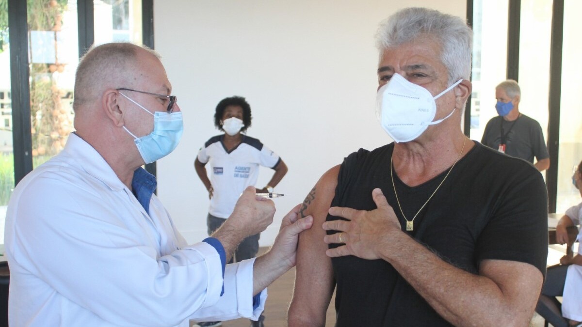 O cantor se vacinou na Zona Sul
