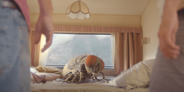 “Mandibles” mostra os dois personagens principais Jean-Gab (David Marsais) e Manu (Grégoire Ludig) encontrando uma mosca gigante no porta-malas de um calhambeque velho. Sim, uma mosca, como o inseto irritante que faz “zumbido” e adora tudo que cheira mal. É adoravelmente cativante de um jeito “tão feio que é fofo”, e os dois homens (que parecem a versão francesa de Debi e Lóide) decidem treiná-lo e adotá-lo como um animal de estimação.