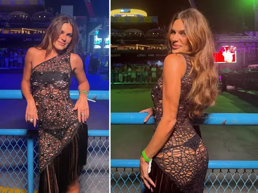 É tempo de folia, e Mariana Goldfarb chamou atenção ao marcar presença na primeira noite de desfiles do Grupo Especial do Rio, na madrugada desta segunda-feira (16), em um dos camarotes da Marquês de Sapucaí. A modelo apostou em um visual totalmente transparente, que evidenciava as curvas e deixou o bumbum à mostra, roubando olhares durante a passagem das escolas pela avenida.