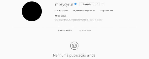 A cantora Miley Cyrus apagou todas as mais de cinco mil fotos que tinha em seu Instagram neste fim de semana. Até mesmo a foto de perfil foi deletada – e substituída por uma imagem totalmente preta.