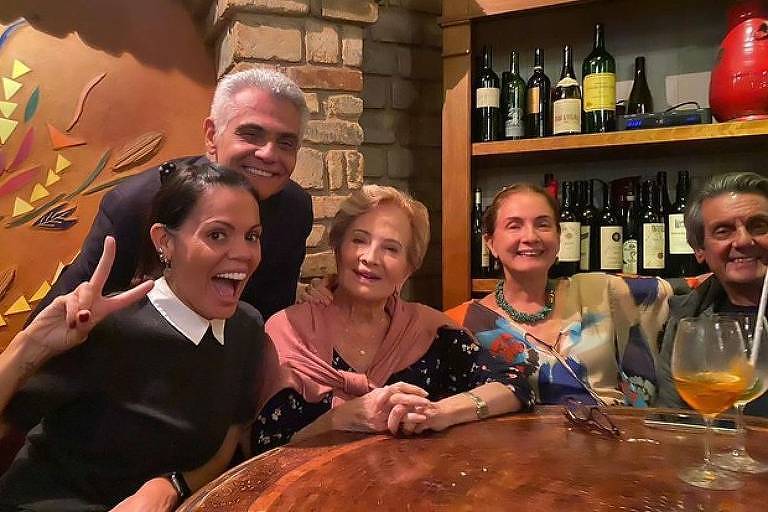 Mocita Fagundes publicou na noite desta segunda (20) uma foto da sogra, a atriz Glória Menezes, 86, em jantar ao lado da família.