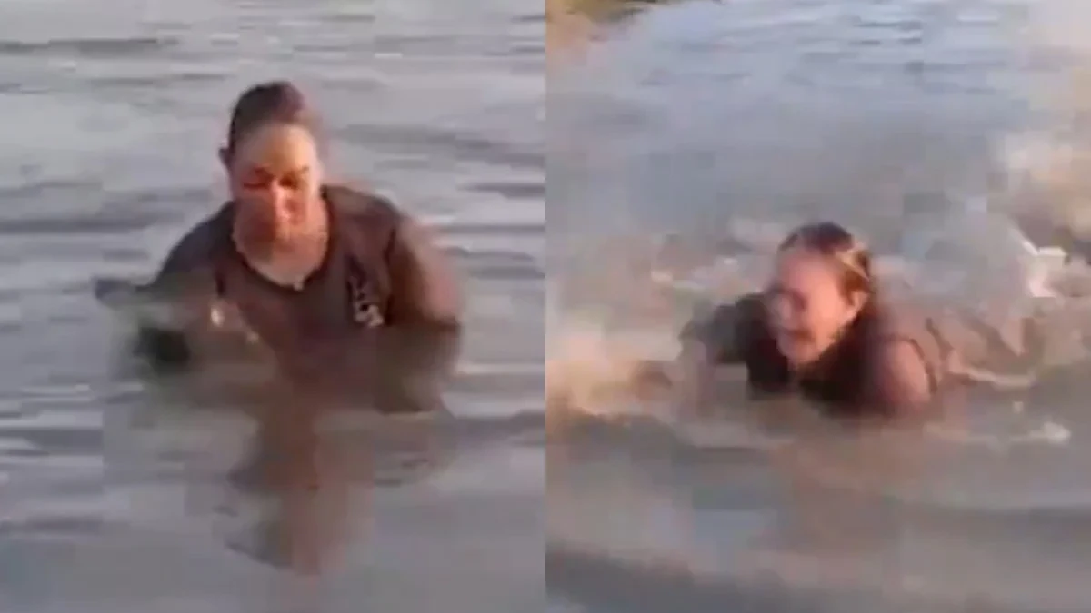 Segundo relatos, a mulher acreditou ter visto um objeto flutuando na água e chegou a segurá-lo. Logo em seguida, percebeu que se tratava de um jacaré jovem, da espécie caiman, e reagiu com gritos, soltando o animal e nadando rapidamente até a margem.
