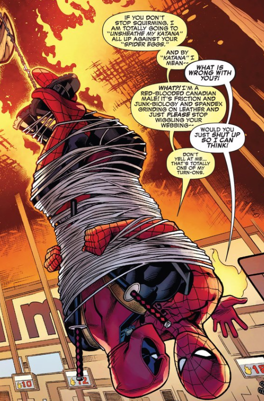 Se o filme não deixou isso claro o bastante, vamos sublinhar aqui: Wade Wilson não liga a mínima para gêneros. Embora ele não tenha se envolvido com nenhum homem no cinema (ainda), isso já aconteceu algumas vezes nas HQs. Embora o personagem tenda a ser um pouco solitário (ninguém suporta o Deadpool), ele já teve suas aventuras ou senão pelo menos tentou: dando em cima a torto e a direito sobre vários heróis e vilões com graus variados de sucesso.