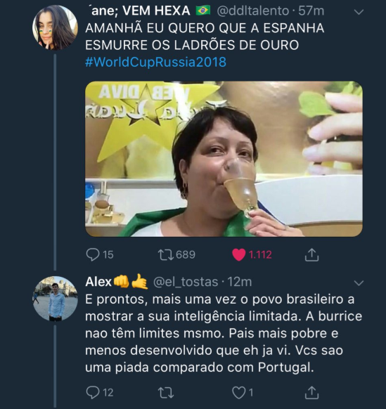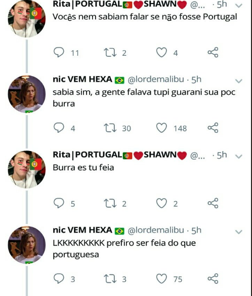 Já não é de hoje que brasileiros e portugueses trocam farpas na internet. Essa rixa, aliás, já causou duas Guerras Memeais no Twitter. A performance dos times de ambos países na Copa do Mundo também gerou discussões acaloradas envolvendo memes.