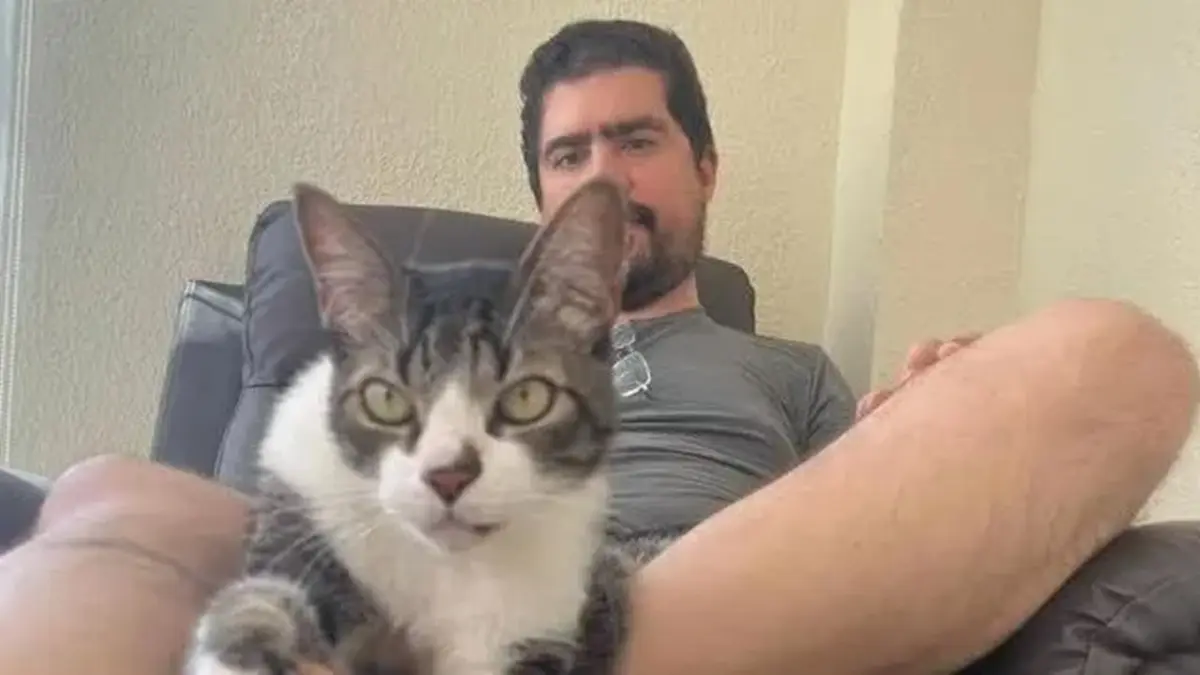 Na publicação sem legenda, o apresentador do podcast “Os Três Elementos” está sentado em uma poltrona de pernas cruzadas e com um gato no colo. Pirulla sofreu um AVC em 30 de maio e chegou a ser internado na UTI. Ele teve alta hospitalar em agosto.
