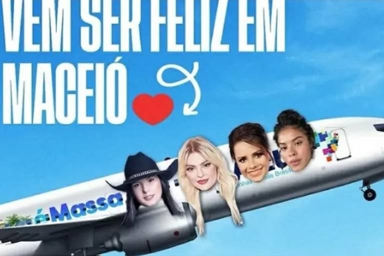 A prefeitura de Maceió usou uma imagem com os rostos das mais novas solteiras Sandy, Luísa Sonza, Ana Castela e Bella Campos num avião para promover as belezas naturais do município de Alagoas. “Maceió é a capital do amor, mas ser solteiro aqui também é bom demais”, diz a postagem.