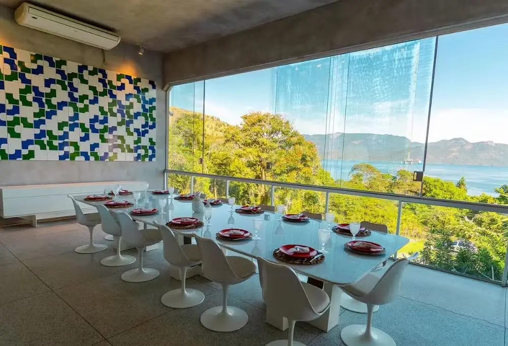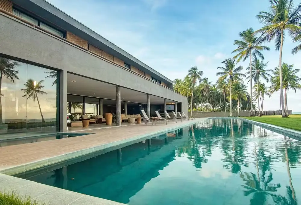 Já a mansão de São Miguel dos Milagres, em Alagoas, é pé na areia, fica a 50 metros da Praia do Marceneiro e reúne dez suítes em estilo rústico-chique, projetadas pelo arquiteto Rodrigo Fagá. O imóvel conta ainda com piscina à beira-mar, deck com espreguiçadeiras, lounge e rooftop para contemplar o visual paradisíaco. A hospedagem custa R$ 16 mil por dia — o dobro do valor de 2023 — e as datas de fim de ano já estão esgotadas.
