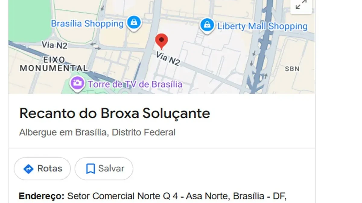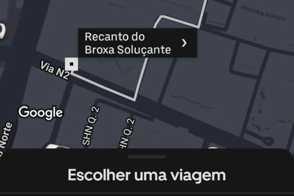 Uma alteração curiosa e polêmica nos mapas digitais chamou a atenção de usuários em Brasília nesta segunda-feira (5). Quem acessou o Google Maps ou aplicativos de transporte como a Uber nas proximidades da sede da Polícia Federal se deparou com a marcação de um local inexistente chamado “Recanto do Broxa Soluçante”, termo de cunho pejorativo que faz referência ao ex-presidente Jair Bolsonaro, preso desde novembro de 2025.