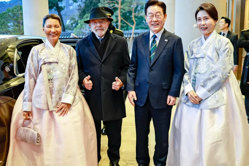 Os looks usados por Lula e Janja chamaram atenção durante o jantar de Estado realizado em Seul, na Coreia do Sul. A primeira-dama, que inclusive ganhou um presente de um integrante da banda BTS, apostou em um hanbok tradicional sul-coreano. Para o banquete organizado pelo presidente sul-coreano Lee Jae-myung, Lula optou por um traje formal e chapéu.