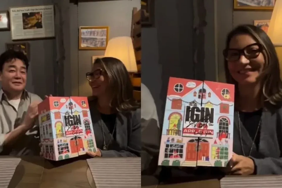 Durante a viagem, Janja foi presenteada por Jin , integrante do grupo de k-pop BTS , com uma garrafa de gin da marca do artista, chamada Igin.