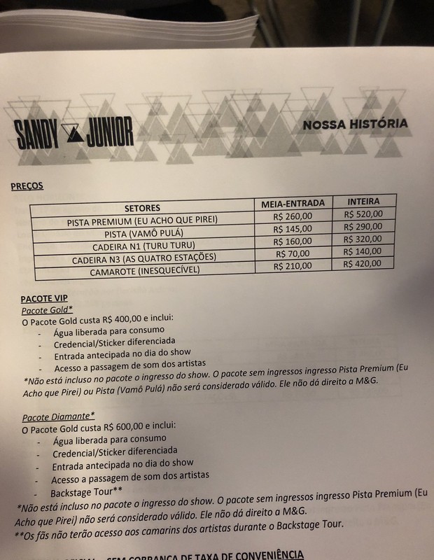VEJA preços das áreas dos shows da turnê Nossa História de Sandy e Junior: