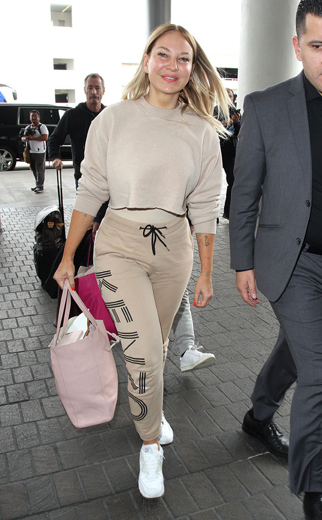 A cantora e compositora australiana mostrou as maçãs do rosto no Aeroporto Internacional de Los Angeles