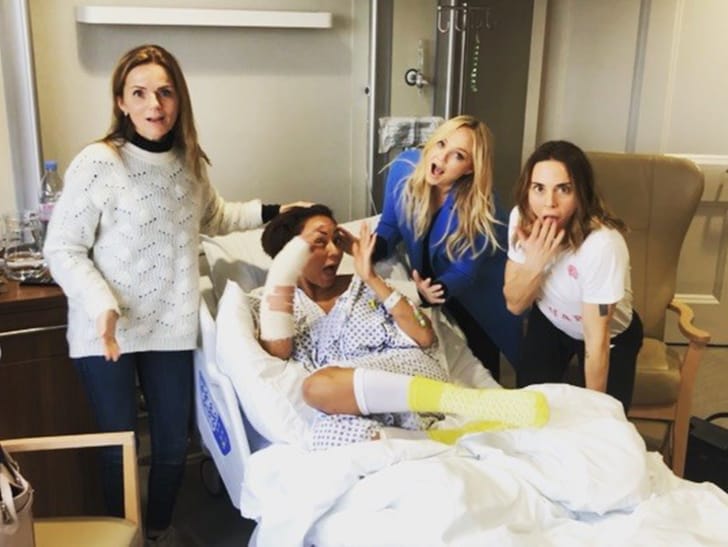 Os ossos quebrados, entretanto, não deverão afetar a turnê especial das Spice Girls, que só acontecerá em junho do ano que vem. Aliás, como boas amigas que são as meninas visitaram a colega de banda no hospital. Só Victoria Beckham não foi.