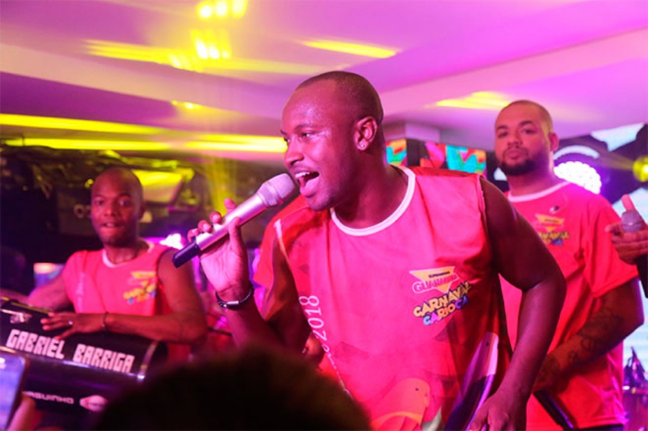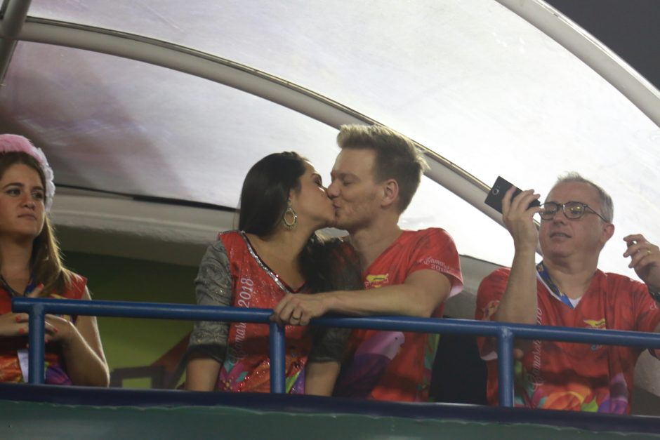 Logo após a apresentação de Michel Teló, já na madrugada do domingo (11), foi a vez que Thiaguinho subir ao palco e agitar o Camarote Guanabara. O pagodeiro estava acompanhado da esposa, Fernanda Souza.