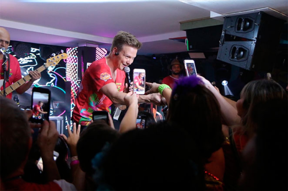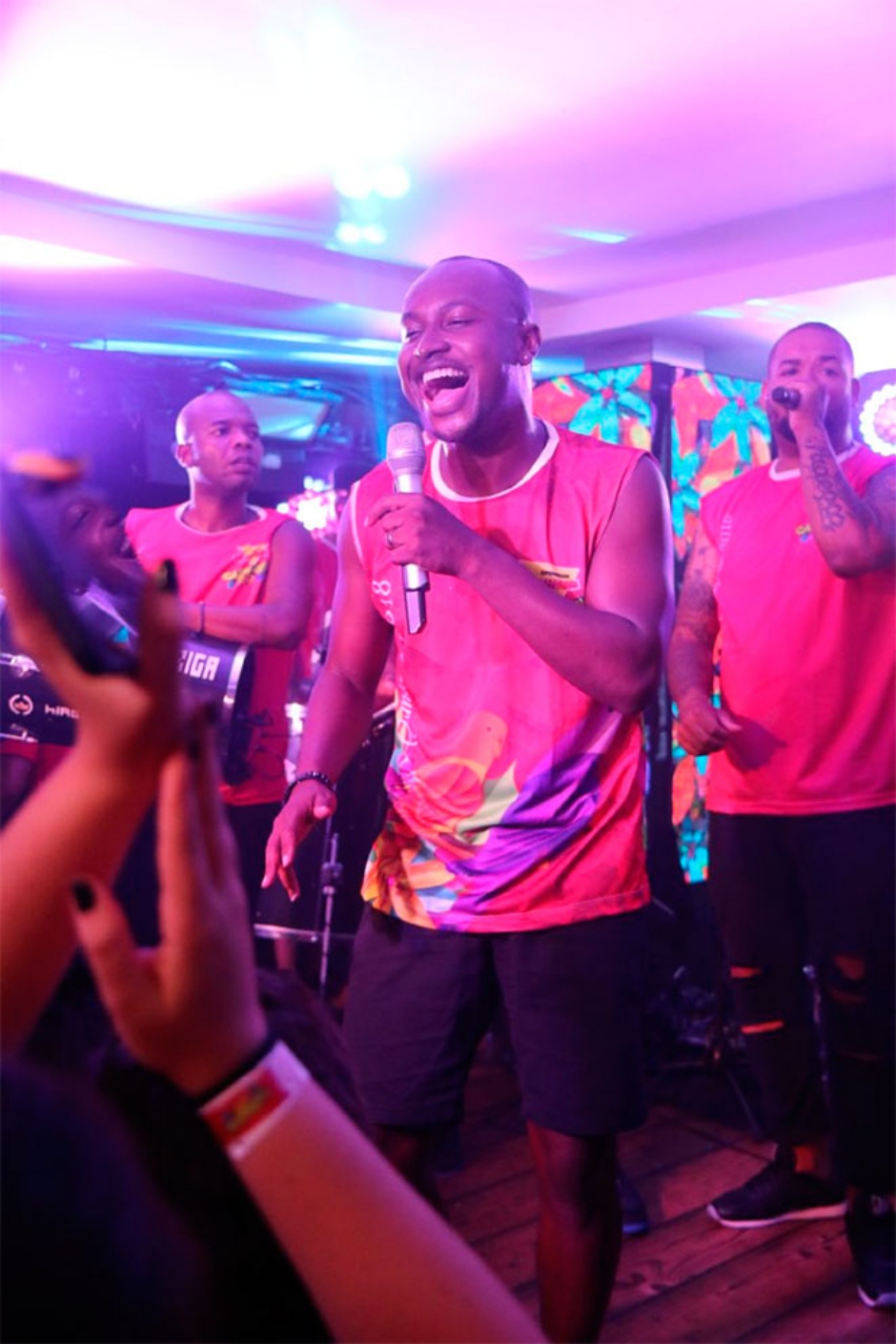 Thiaguinho e Michel Teló agitam o camarote Guanabara no Rio de Janeiro