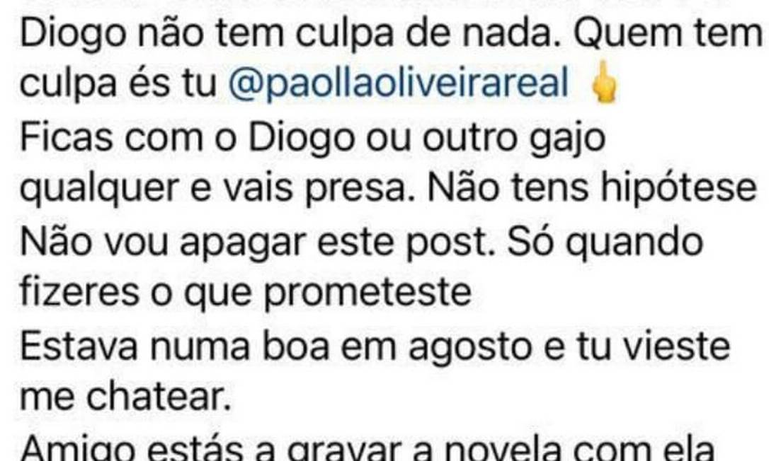 Veja as mensagens que o stalker português mandou para a atriz Paolla Oliveira