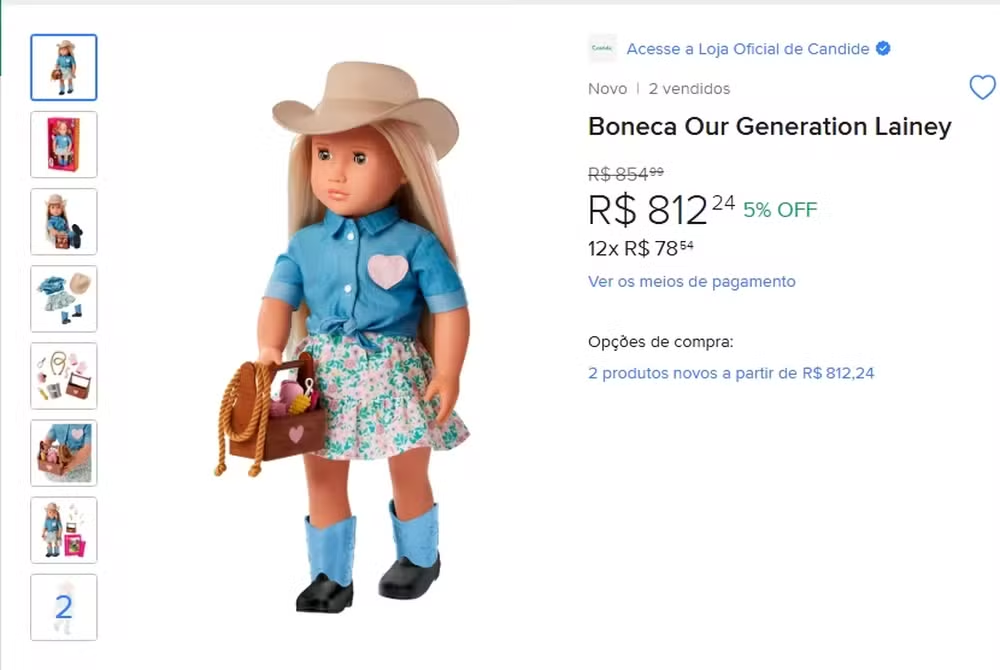 A boneca faz parte da coleção Our Generation, conhecida por suas peças colecionáveis e pelos detalhes realistas. O modelo semelhante ao mostrado no vídeo é vendido em grandes varejistas por mais de R$ 800.