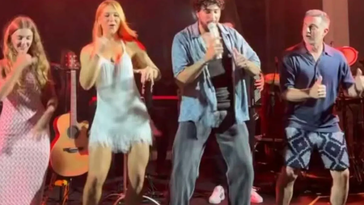 A cena aconteceu durante uma apresentação do cantor Nattan, quando a canção, do grupo Turma do Pagode, começou a tocar. Animados, Huck e a ex de Zé Felipe passaram a fazer a coreografia da música, enquanto Eva, filha do apresentador, também entrou na dança e arrancou elogios dos internautas.