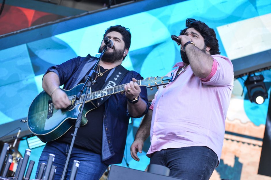 Israel e Rodolffo animaram o público, apesar de terem um problema técnico com o som no fim da apresentação. Desavença que foi contornada antes de Guilherme e Santiago subirem ao palco, cantando hits antigos e novos, como Casa Amarela.