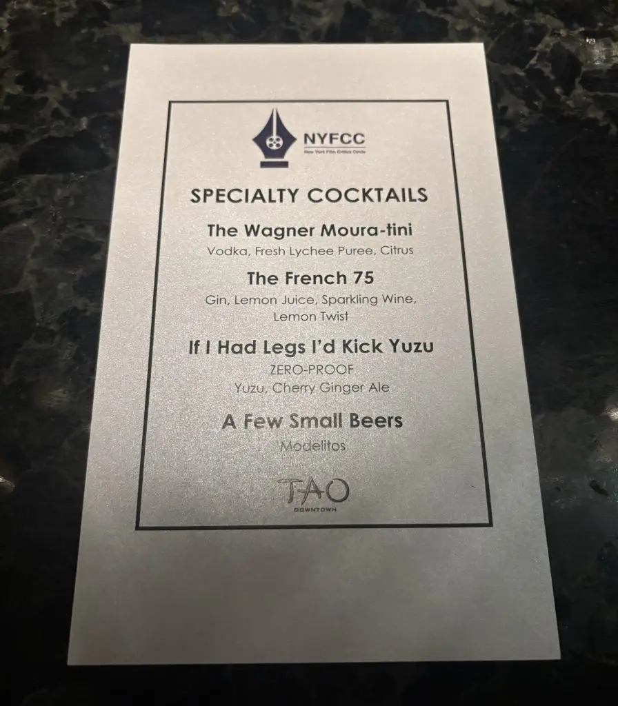 A bebida, uma releitura do martini, integra a lista de coquetéis temáticos preparados em referência aos vencedores da premiação. A receita leva vodka, purê de lichia e frutas cítricas. A associação de críticos havia divulgado os vencedores em dezembro de 2025, mas a entrega das estatuetas ocorreu apenas nesta semana.