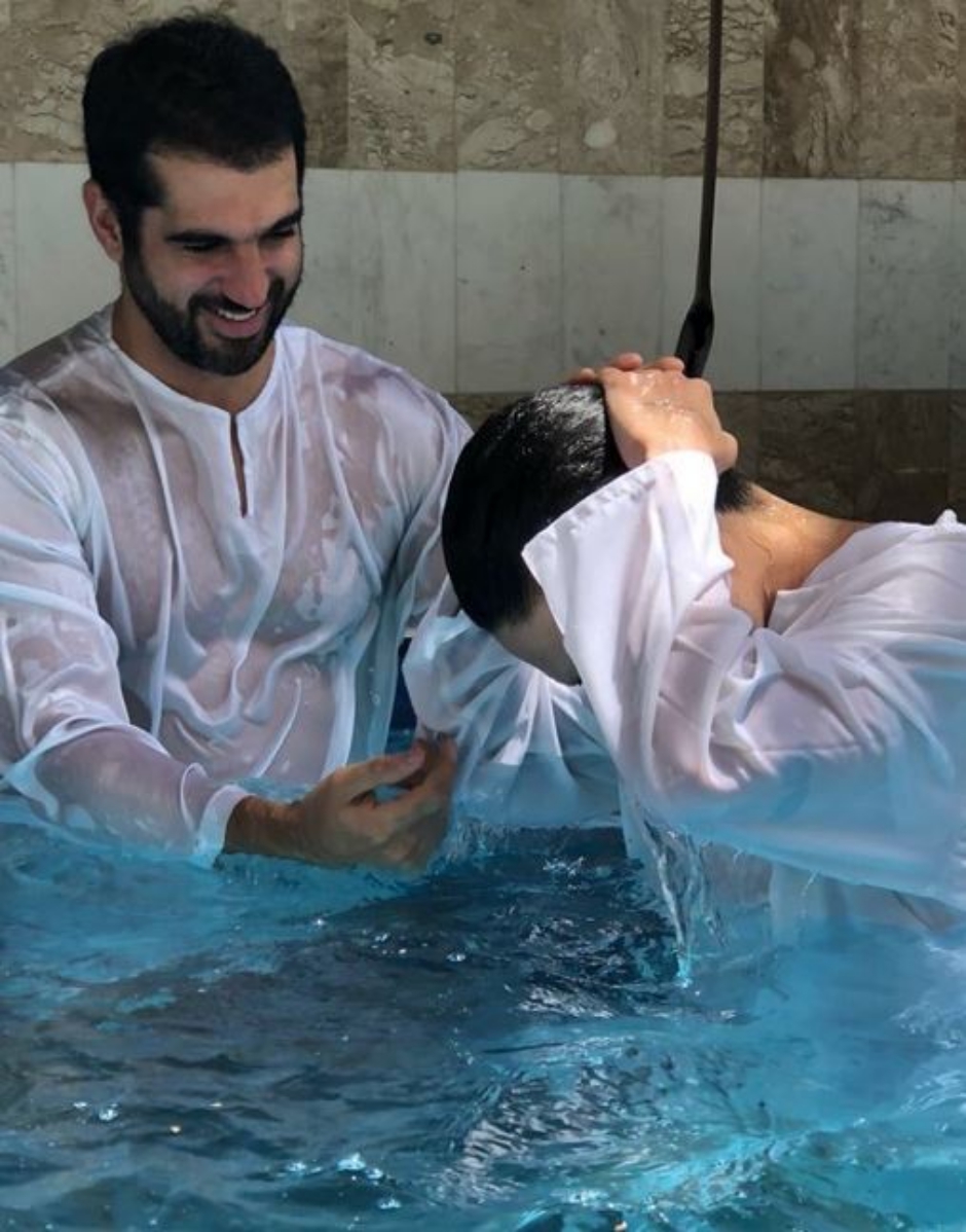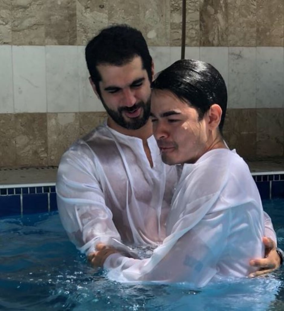 "Quem crer e for batizado será salvo", escreveu o apresentador em suas redes sociais, com fotos do momento do batismo