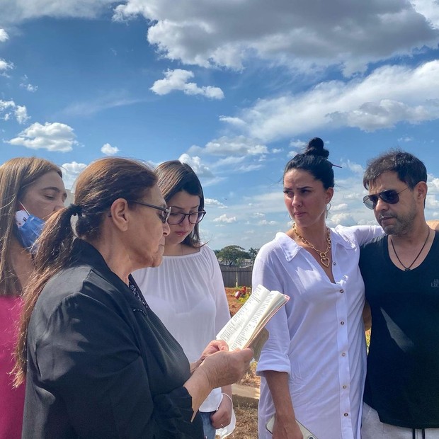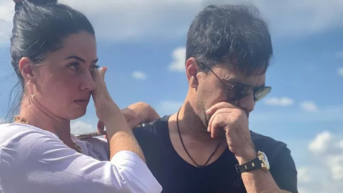 O cantor postou fotos com a esposa, Graciele Lacerda, no cemitério Jardim das Palmeiras, em Goiânia, onde o corpo de Francisco foi enterrado. Ele estava visivelmente emocionado.