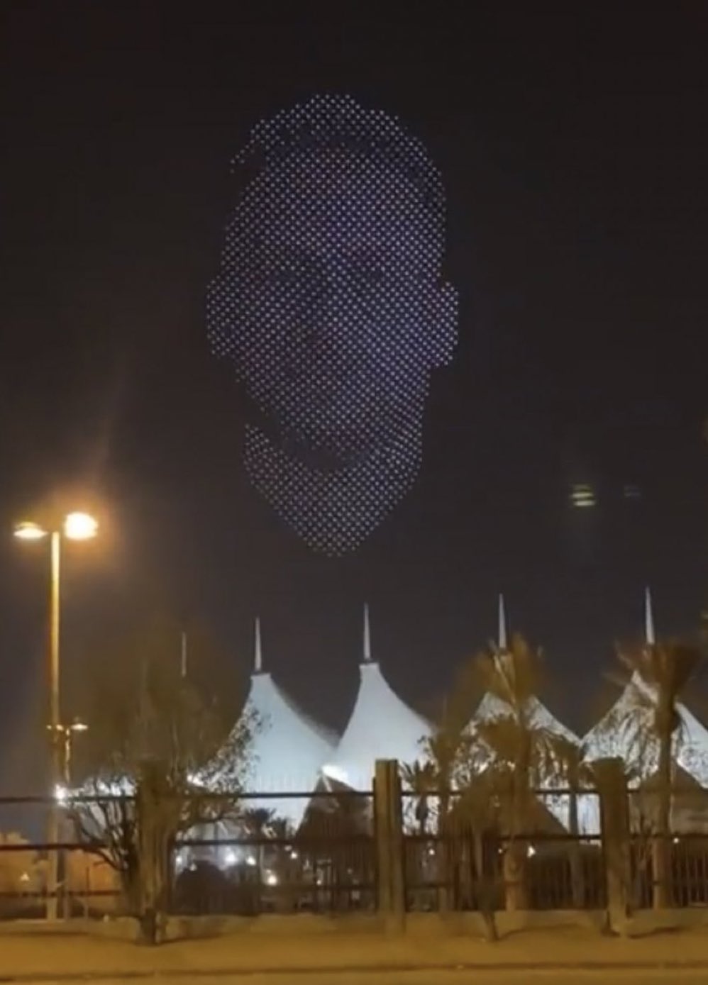 O nome do craque também foi desenhado, além da frase “Neymar is Blue” (Neymar é azul, em referência ao Al Hilal) e o desenho de uma carta semelhante às utilizadas no EA Sports FC, com dados de habilidades dos jogadores e o número 10. Na Copa do Mundo do Catar, em 2022, a taça da Copa também foi desenhada por drones no céu.