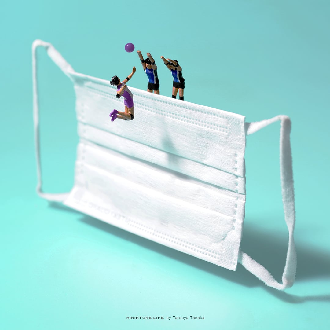 Artista japonês reproduz cenas de modalidades Olímpicas com máscara de proteção facial