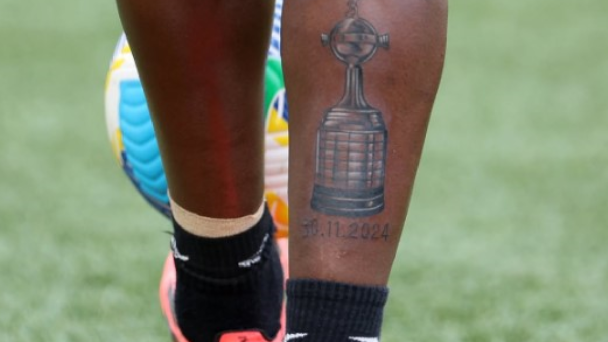 O atacante Luiz Henrique, herói do título conquistado pelo Botafogo na Copa Libertadores e principal nome do iminente título de campeão brasileiro, a ser decidido neste domingo (8), tatuou na perna direita a taça do troféu continental.