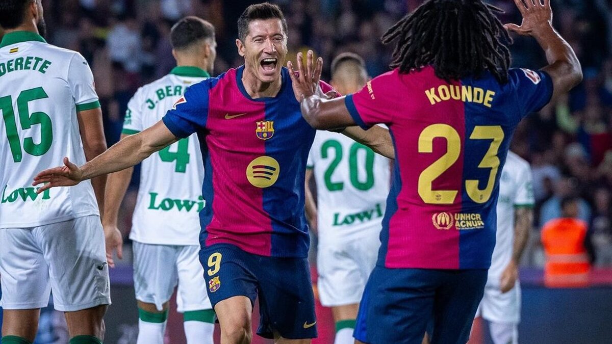 Lewandowski, oportunista, colocou o Barcelona na frente após erro do goleiro. Aos 18 minutos, Koundé recebeu pela direita e cruzou na área. Soria não conseguiu segurar e viu o atacante polonês só ter o trabalho de empurrar para as redes. Do gol para frente, o Barça controlou cada vez mais a partida e levou o 1 a 0 para o intervalo.